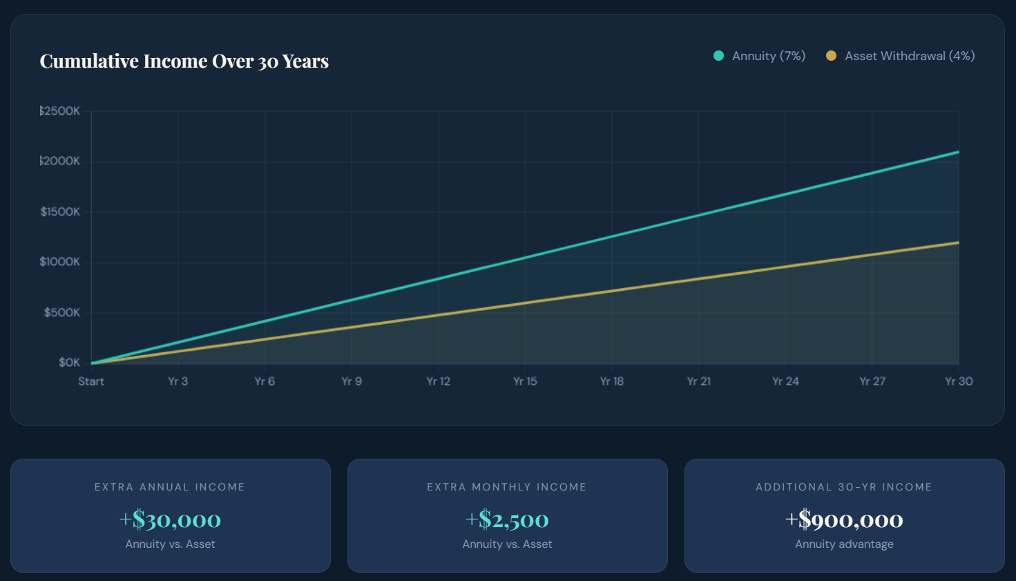 We address this by building a structured income layer — using guaranteed income sources to cover baseline expenses — so your market portfolio has time to recover without forcing early withdrawals.